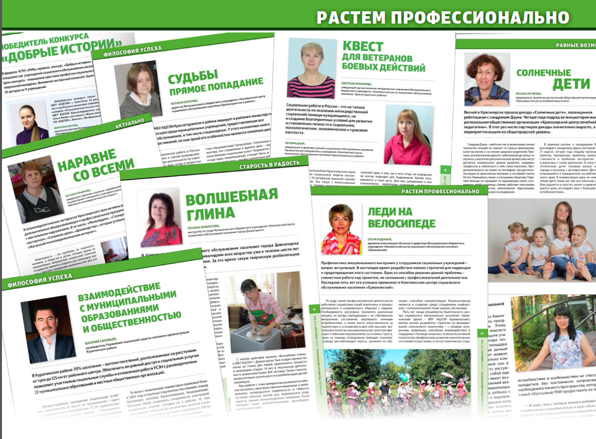 Сотрудники МБУ КЦСОН Краснотуранского района – одаренные и креативные личности, которые активно участвуют в общественной жизни, профессиональных и конкурсах учреждения, села и Красноярского края. Доказательством тому служат не только их многочисленные реализованные программы, проекты и акции, но и опубликованные статьи.