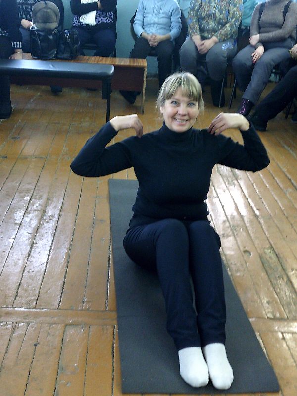 Мастер-класс проводила М.Н. Лихтенвальд – активный и спортивный социальный работник. Марина Николаевна поделилась со своими коллегами комплексом упражнений, которые она применяет в своей работе с получателями социальных услуг, в том числе для пожилых людей, имеющих ограничения в движении.