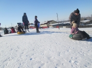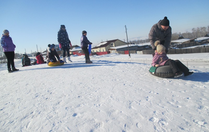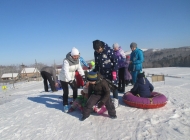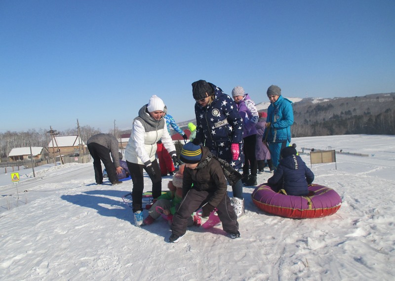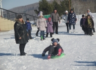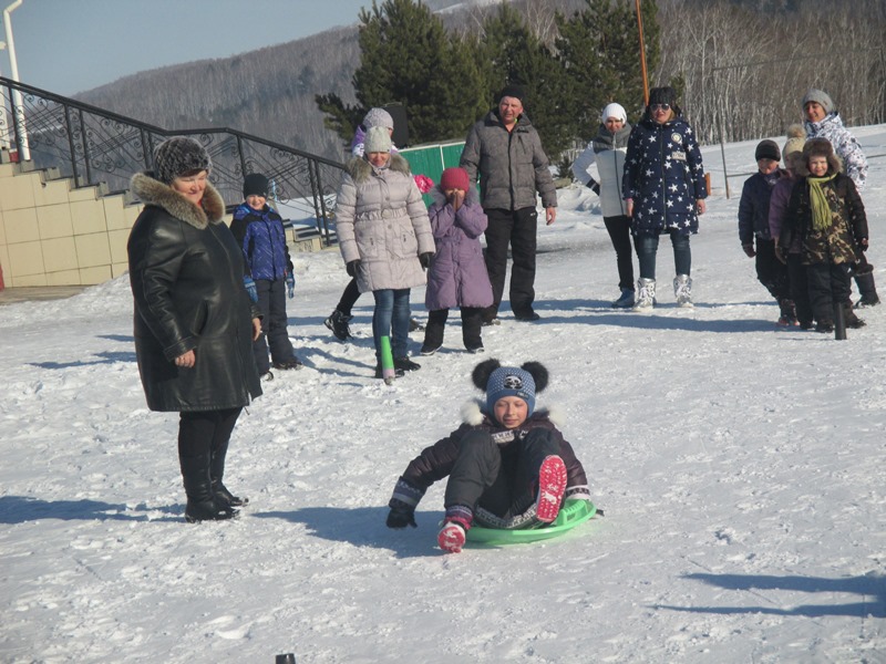 В основной части семейного отдыха прошли спортивные эстафеты. Командам были предложены занимательные конкурсы на ледянках. Этапы состязаний проходили в напряженной борьбе. Болельщики переживали за свои команды. Все старались прийти к финишу первыми.