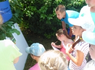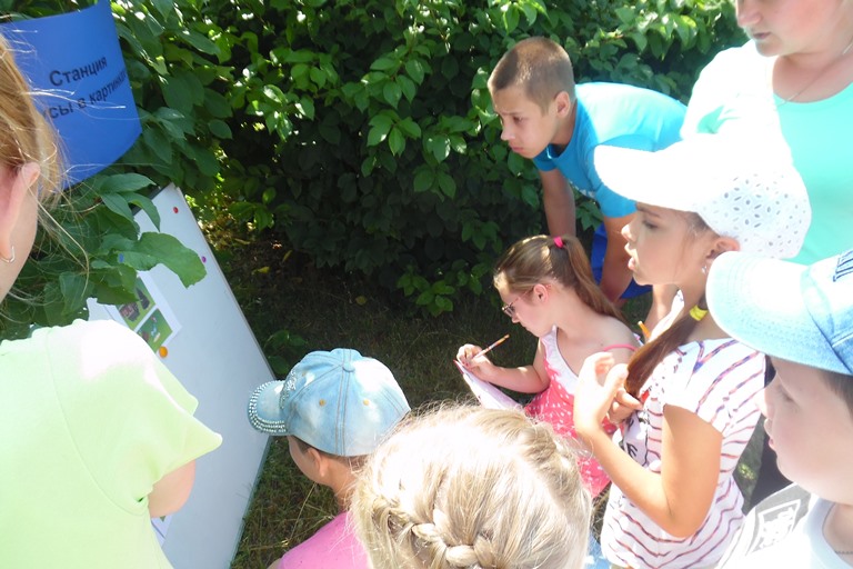 Самым эмоциональным испытанием стал конкурс «козявочка», в котором нужно было за 5 минут собрать как можно больше насекомых. Сколько собрано насекомых, столько баллов получает команда. Затем насекомые обязательно выпускаются на свободу. Дети вспомнили алфавит, где им нужно было на каждую букву назвать фрукт, овощ или ягоду. Отгадывали ребусы по картинкам. Отвечали на юмористические вопросы сказочной викторины. Поиграли в «боулинг», нужно было катить шар и сбивать кегли. За 5 секунд необходимо было ответить на вопрос. Побывали следопытами, искали шары в кустах и на деревьях. Придумывали слова в состав которых входит «чай». Прыгали на скакалке все, кто умеет и не умеет. На станции «пойми меня» каждый участник получал листок с заданием и с помощью мимики и жестов изображал, что написано, а команда должна отгадать. Ну и последняя станция «Фото на память», где дети побывали в роли смурфиков.