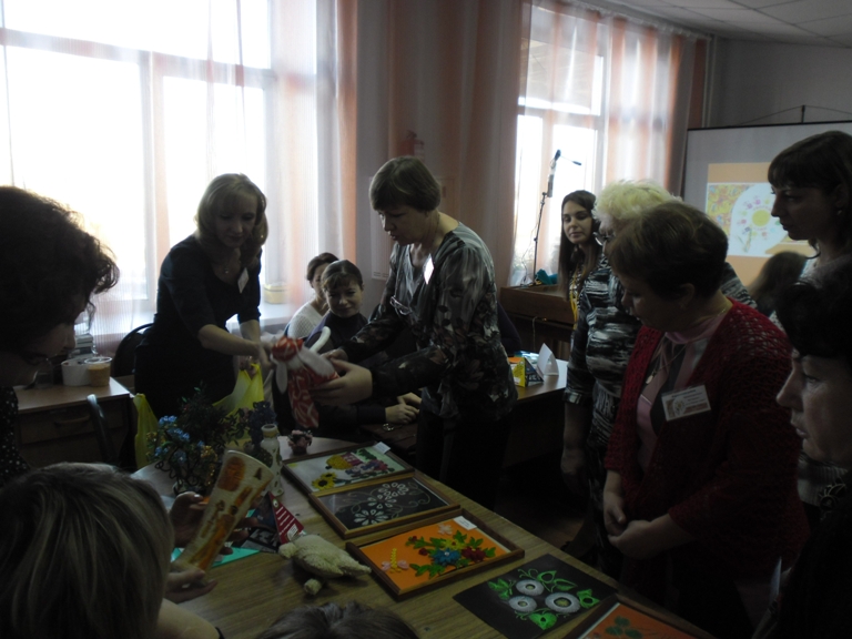 Программа семинара была разделена на два блока. В первом блоке выступила заведующая отделением дневного пребывания Л.О.Калягина, сделав обзор работы отделения по теме семинара. Выступление заведующей организационно – методическим отделением С.А. Прохоровой носило поэтическое название: «Когда песчинка взлетает в небо», Светлана Александровна рассказала о необычайных свойствах песка и стекла, о его терапевтических возможностях. Шаповалова Ю.С., психолог отделения, сделала экскурс в занятия, которые проводятся в отделении дневного пребывания, в соответствии с программой «По ту сторону стекла». Специалист по социальной работе Терентьева Н.В. ознакомила присутствующих с формами, методами и технологиями, применяемыми непосредственно на занятиях, организованных для граждан пожилого возраста и инвалидов. В заключительной части первого блока выступили представители Минусинского центра социального обслуживания населения со слайд-презентацией и выставкой творческих работ.
