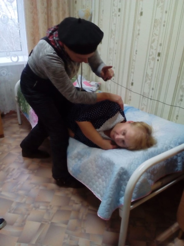 Заведующая отделением социального обслуживания на дому Газиева В.Н. показала социальным работникам способы поворачивания тяжелобольных в постели, рассказала о мерах профилактики пролежней и заболеваний, сопутствующих длительному нахождению на постельном режиме