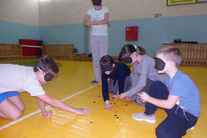 Учились с закрытыми глазами различать денежные знаки, определять продукты питания и различные предметы. Познакомились с азбукой Брайля.