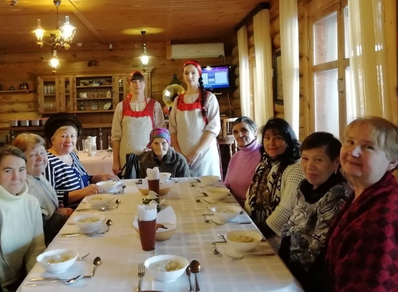 Организаторы подготовили насыщенную программу, в которую входила не только социокультурная, но и трудовая реабилитация. В рамках выезда участники посетили обзорные и тематические экскурсии, наблюдали за демонстрацией гончарного, бондарного и ткацкого ремесла от умелых мастеров, насладились выступлением «Песни казаков» фольклорного ансамбля «Плетень» и услугами крестьянской кухни в Новой деревне. А самое главное, что вторая часть программы состояла в личном участии пожилых в мастер-классах. На мастер-классе «Куклы-неразлучницы» участники изготовили себе обереги, а на мастер-классе по гончарному ремеслу каждый смог почувствовать себя в роли мастера, своими руками изготовить изделия из глины, оказаться за гончарным кругом и получить массу положительных эмоций.