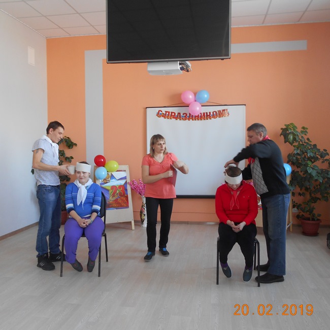 И в преддверии мужского праздника в МБУ «Комплексный центр социального обслуживания населения Краснотуранского района» специалистами социально - реабилитационного отделения было организовано для молодых людей с ограниченными возможностями здоровья конкурсно-развлекательное мероприятие «Армейские будни».