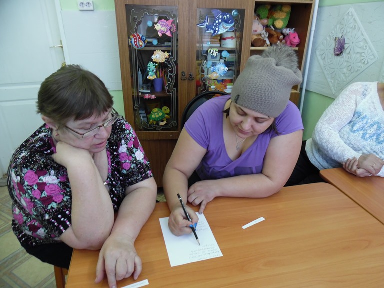 Вторая часть занятия была практическая. Родители определились с ситуацией, которая требует коррекции, проанализировали, как ребенок проявляет проблемное поведение, выбрали главного героя. Затем под руководством специалиста по шестишаговой модели учились писать терапевтические сказки для своих детей. Занятие прошло с пользой. Каждый родитель ушел с занятия с готовой сказкой.
