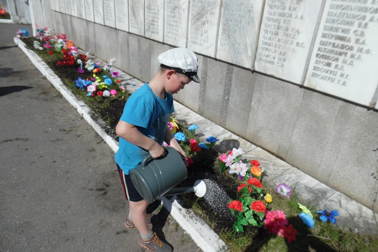 В мероприятии приняли участие 10 детей. Дети вскопали клумбы и посадили цветы возле мемориала на площади Победы. А затем убрали мусор с площади. Так же дети прошли по аллее и развешали памятки с призывом соблюдения чистоты в общественных местах.