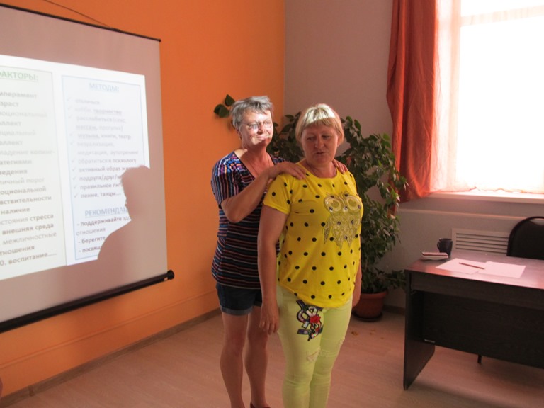 Социальные работники узнали о факторах, влияющих на психологическое здоровье, о различных методах сохранения и быстрого восстановления своего психологического здоровья, и – что чрезвычайно важно – получили возможность познакомиться с методами снижения нервно-психического напряжения, попрактиковаться в применении предложенных техник и получать действительно эффективные результаты – быстрое восстановление затраченной нервно-психической энергии.