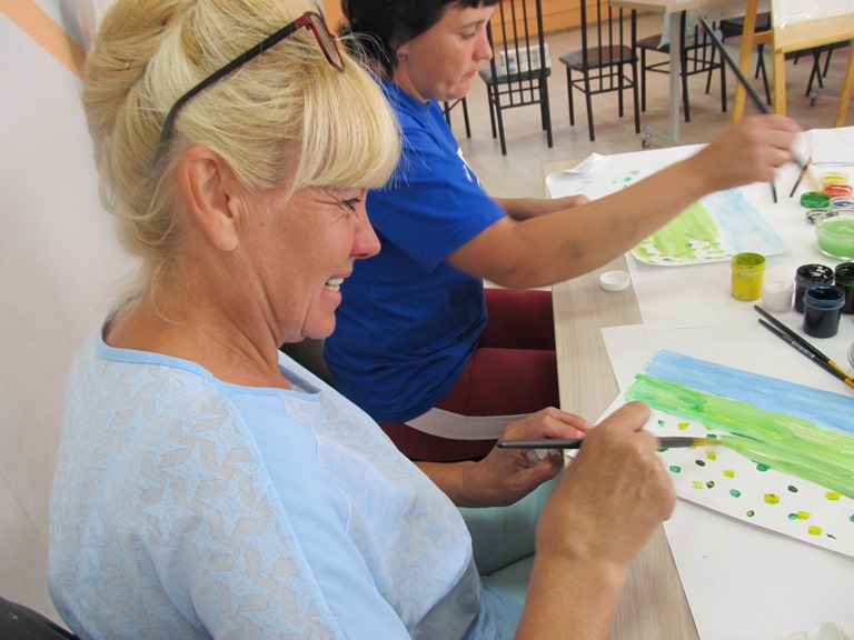 «Правополушарное рисование не имеет противопоказаний, оно быстро избавляет человека от самых сильных токсинов, отравляющих организм – отрицательных эмоций (страх, гнев), чувств (обида, зависть, безысходность), выводит из подавленного состояния» - так охарактеризовала эту технику инструктор по трудовой терапии учреждения Стародымова Н.В.
