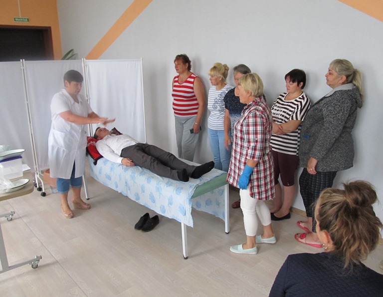 16.07.2019 года в отделении социального обслуживания на дому муниципального бюджетного учреждения «Комплексный центр социального обслуживания населения Краснотуранского района» состоялось четвертое практическое занятие для помощников по уходу. Медицинская сестра отделения социальной реабилитации граждан пожилого возраста и инвалидов Прецер Г.В. рассказала и показала на манекене, как проводится гигиена тела, лица, головы, интимной зоны, смена постельного и нательного белья. Социальный работник Мельдер Н.В, поделилась опытом, как она осуществляет эти процедуры.