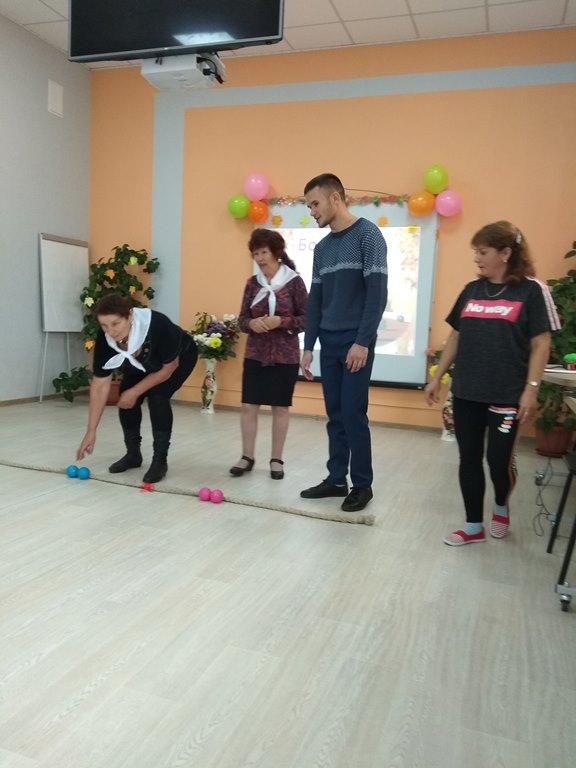 1 октября в МБУ КЦСОН Краснотуранского района специалистами социально-реабилитационного отделения было организовано мероприятие для людей пожилого возраста «Живи активно – мысли позитивно!». На этот раз мы отошли от привычных дружеских посиделок и под неизменный шлягер Владимира Высоцкого «Утренняя гимнастика» взяли курс на спорт -провели спортивный турнир по игре Бочче.