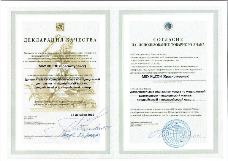МБУ КЦСОН Краснотуранского района получил право использования товарного знака «100 лучших товаров России» в информационно-рекламных целях.