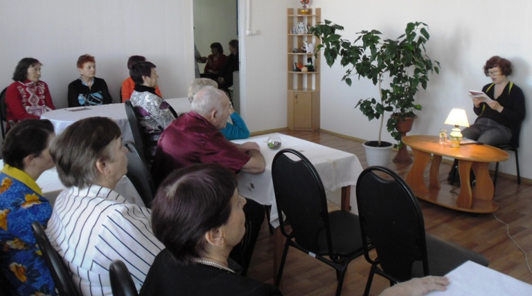 На этот раз вечер был посвящен человеку с активной жизненной позицией, участнице вокальной группы «Радуга», поэтессе и просто хорошему человеку Валентине Ивановне Лучшевой. Поэзия очаровала Валентину Ивановну с юных лет и главными жанрами в ее творчестве стали басни и сказки. Валентина Ивановна рассказала гостям о своей жизни, о том, как начала писать стихи, прочитала, как ранние, так и новые свои произведения. В конце мероприятия были показаны слайды из жизни героини вечера.