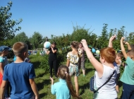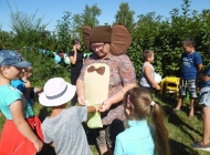 Дети с удовольствием провели время с интересным и добрым мультипликационным персонажем: отвечали на вопросы занимательной викторины, играли в подвижные игры, разгадывали филворд, в котором спрятались имена персонажей мультфильма. Затем дети изготовили флажки и подарили их Чебурашке. В ответ Чебурашка подарил детям по воздушному шарику и угостил сочными ранетками, которые на праздник принес Илья со своей бабушкой.