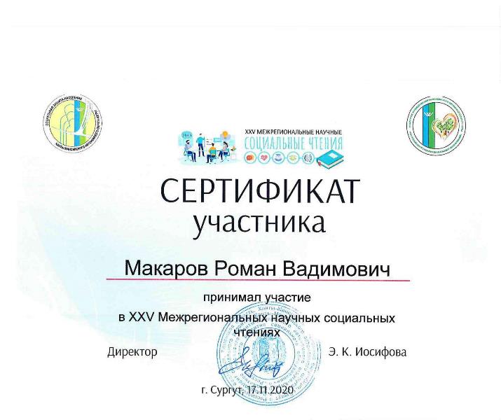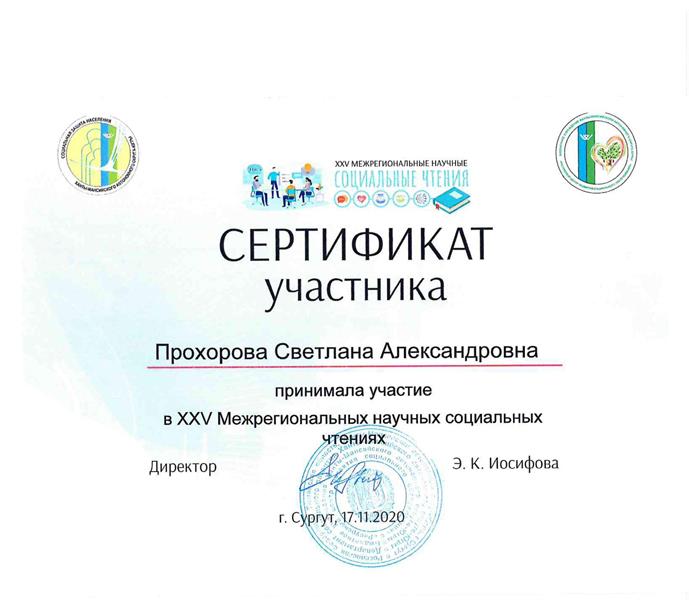 17.11.2020 года состоялись межрегиональные научные социальные чтения «Национальный проект «Демография»: от цели к решениям» (г. Сургут).