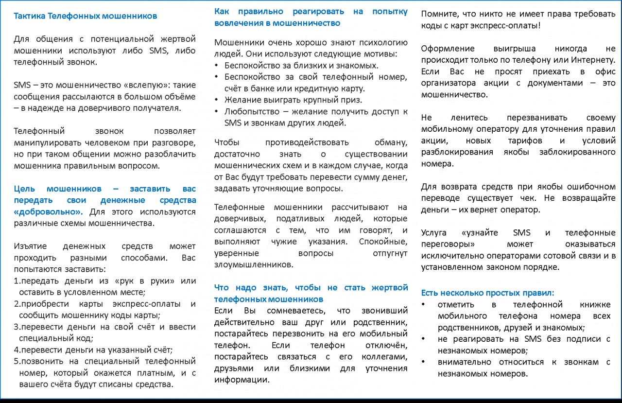 Управление «К» МВД РФ напоминает, что чаще всего в сети телефонных мошенников попадаются пожилые люди или доверчивые подростки. При этом каждый человек может стать жертвой мошенничества, если не будет следовать простым правилам безопасности.