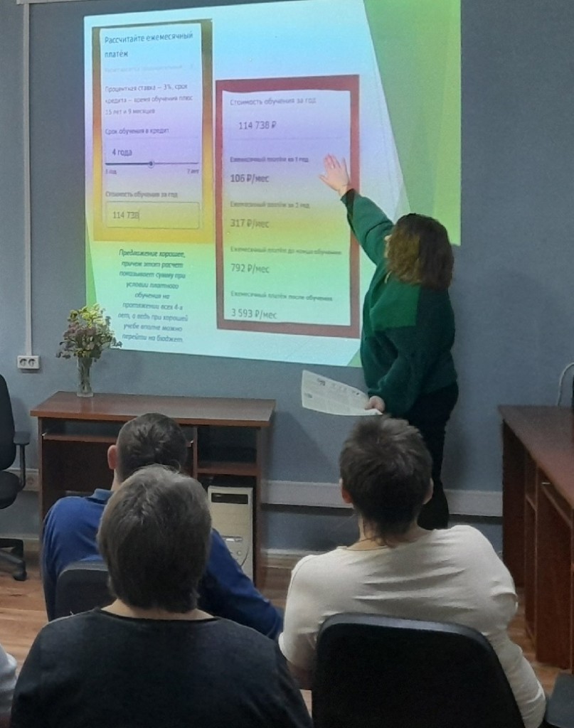 29 октября 2024 г. в КГБУ СО "Комплексный центр социального обслуживания населения "Краснотуранский" на базе социально-реабилитационного отделения для граждан пожилого возраста, инвалидов и детей с ограниченными возможностями в рамках III этапа Всероссийской просветительской эстафеты "Мои Финансы" прошло занятие "Образовательный кредит: для кого он предназначен". Участниками занятия стало работающее население, в том числе сотрудники Центра, дети которых могут воспользоваться этой финансовой услугой.