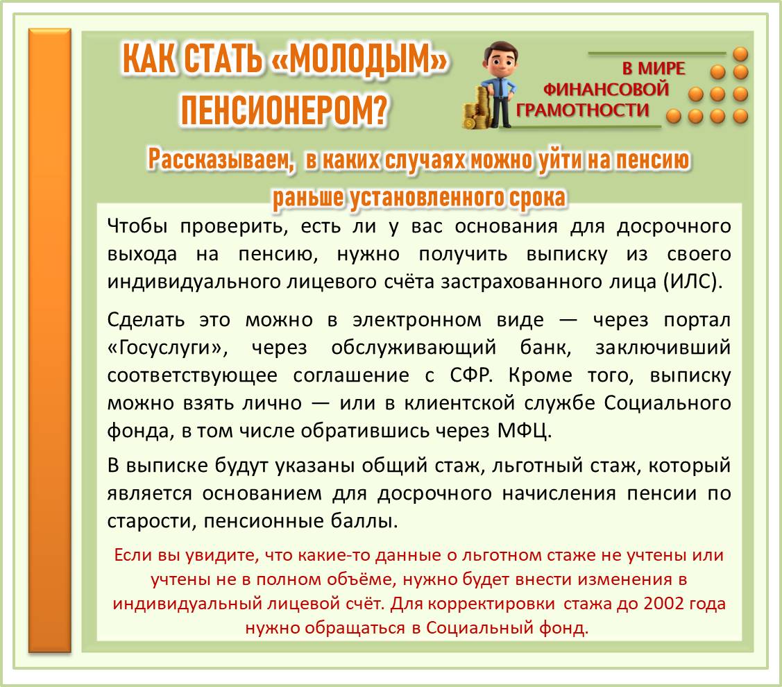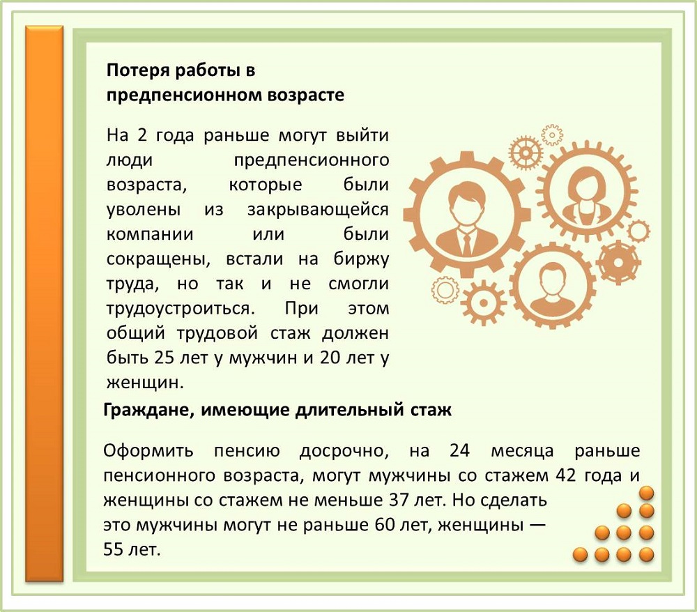 В карточках можно ознакомиться с основаниями ухода на досрочную пенсию.