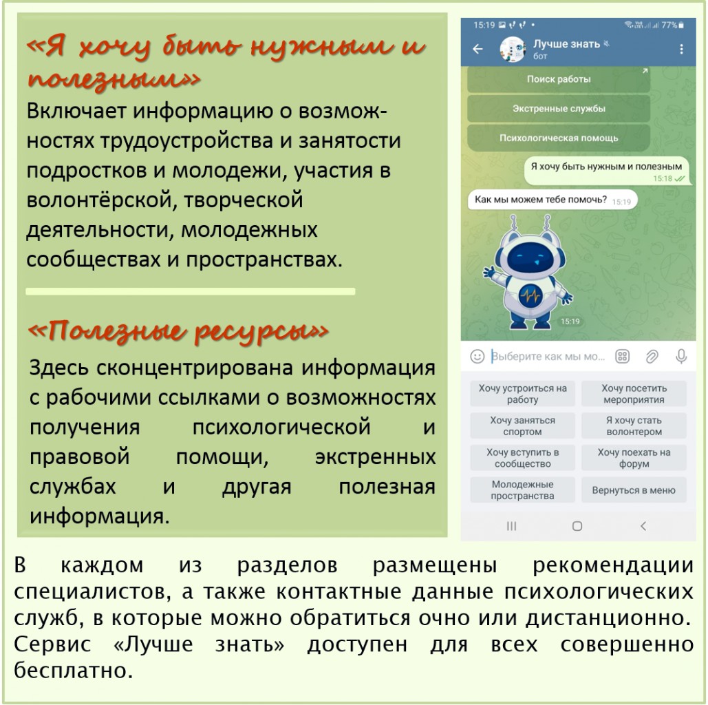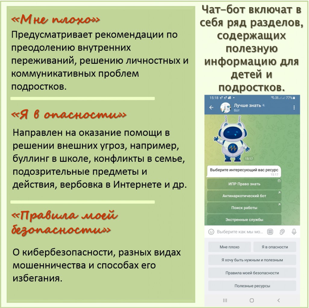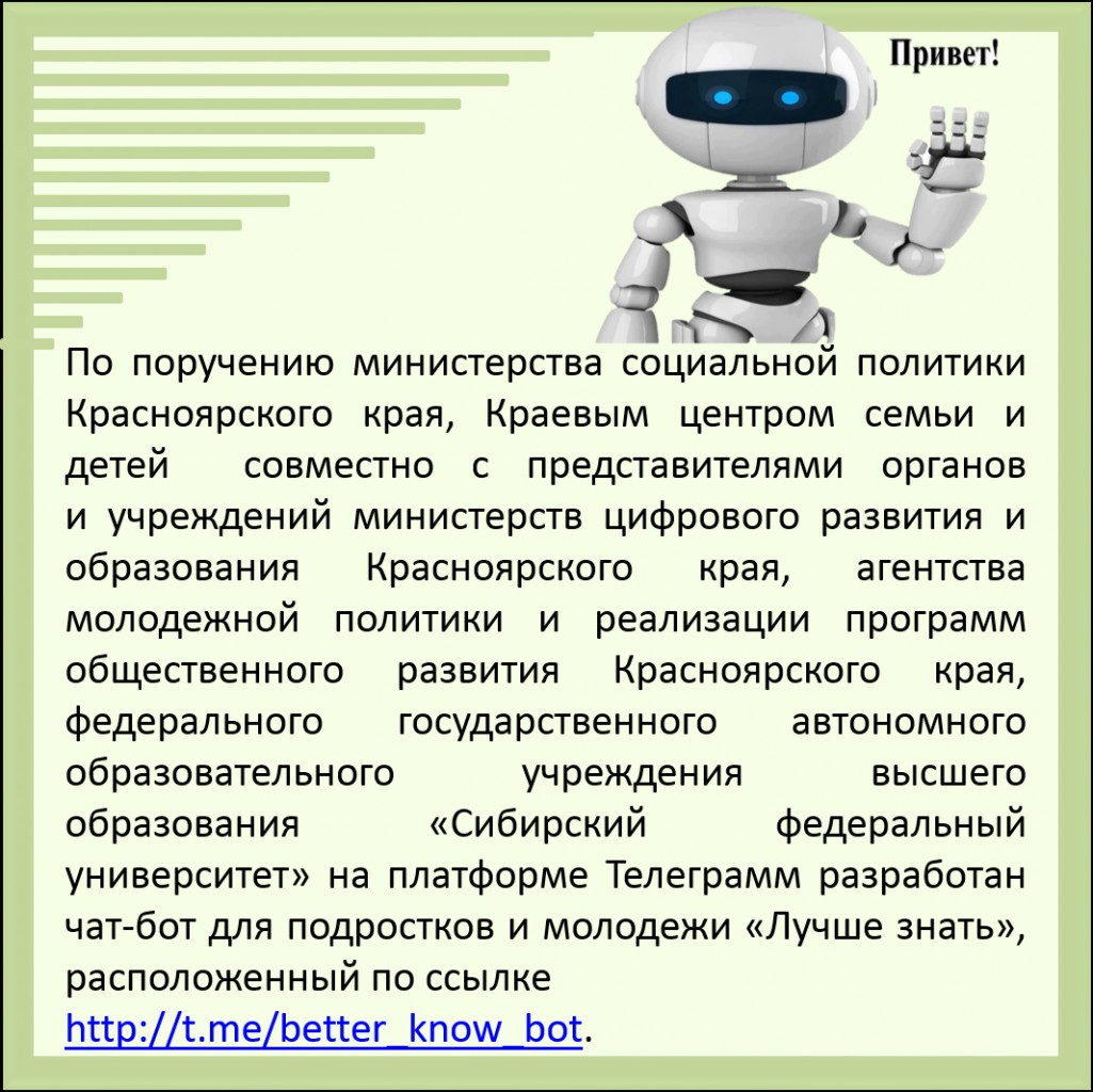 Разработан чат-бот для подростков и молодежи «Лучше знать» 01.12.2025 г. Ссылка http://t.me/better_know_bot Перейти на список статей