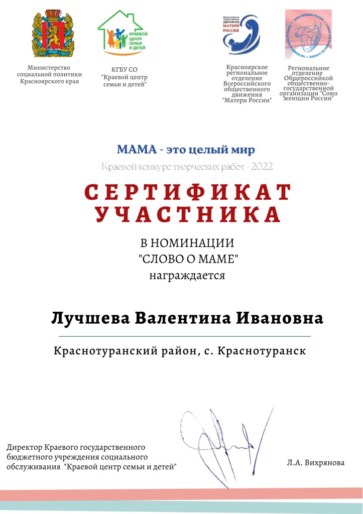 Название: Краевой заочный конкурс творческих работ «Мама — это целый мир».