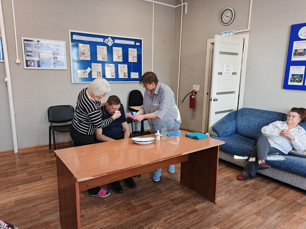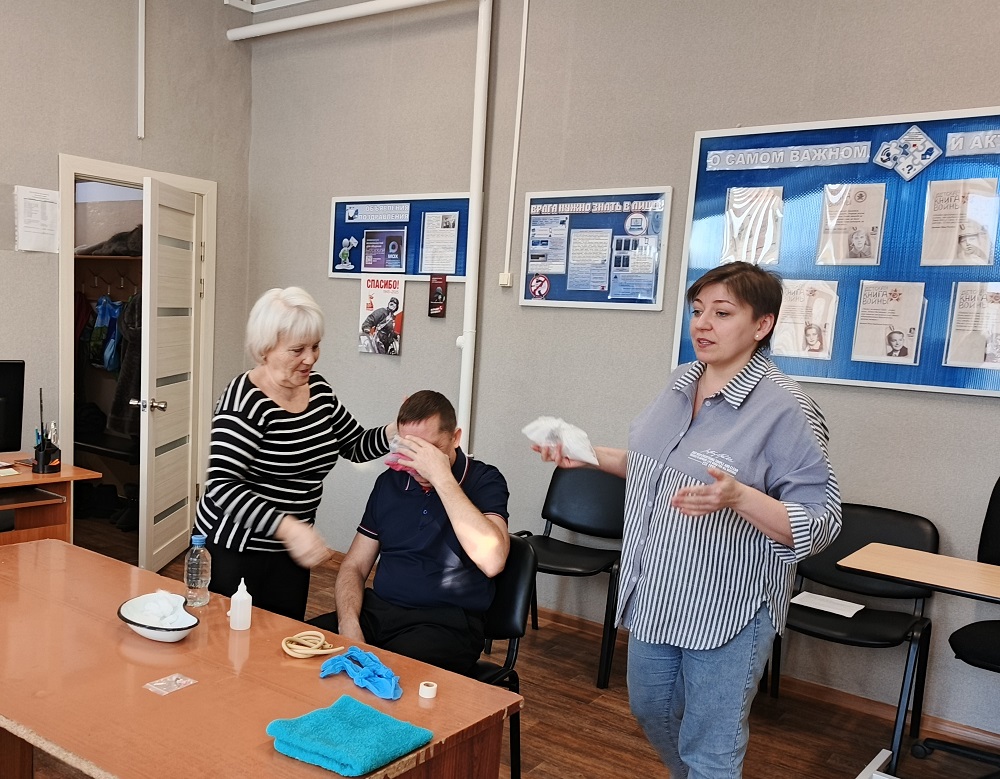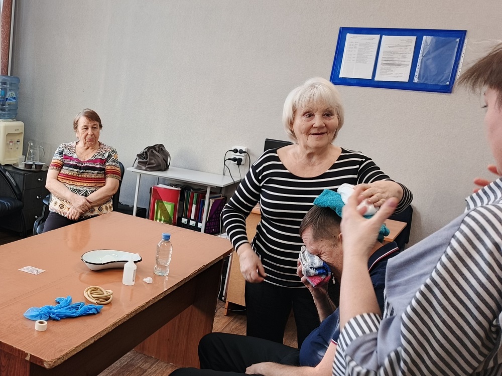 На занятии были рассмотрены причины носового кровотечения, симптомы, возможные ошибки в алгоритме оказания помощи, а также наглядно отработаны практические навыки: правильное положение тела пострадавшего, применение холодного компресса, техники прижатия крыла носа. Ведь основа родственного ухода – это улучшение состояния здоровья, облегчение жизнедеятельности маломобильного гражданина.